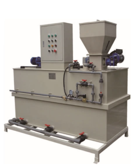 3、固體藥劑采用干粉投加機(jī)精確投加,投加量精確可調(diào),保證藥劑配比穩(wěn)定;