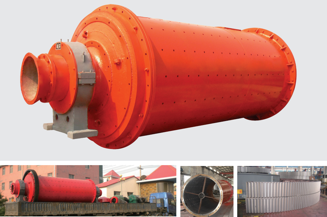 本機(jī)由入料口、出料口、中空軸、軸承、(軸瓦)、筒體、大齒 輪、小齒輪、減速機(jī)、電動(dòng)機(jī)等幾部分組成。磨礦過程是將物料 裝入連續(xù)轉(zhuǎn)動(dòng)的筒體中,筒體裝入一定數(shù)量的不同尺寸研磨體,如: 球、棒、短圓柱等,當(dāng)筒體以一定速度旋轉(zhuǎn)時(shí),這些研磨體則被帶 動(dòng),產(chǎn)生沖擊、研磨作用,從而將物料磨碎。